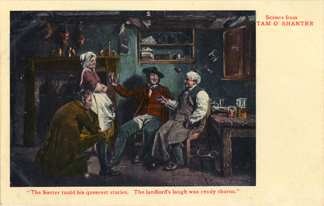 One of Burns' best-loved tales is the story of a farmer from Maidens who, against his wife's good advice, gets into trouble as a result of his fondness for drink and an eye for the lasses. The poem is a favourite feature of Burns Suppers across the world and many Scottish pubs will give a free dram or two to anyone who can give a good recitation, start to finish, a good recital means in a good rendering of the old dialect.